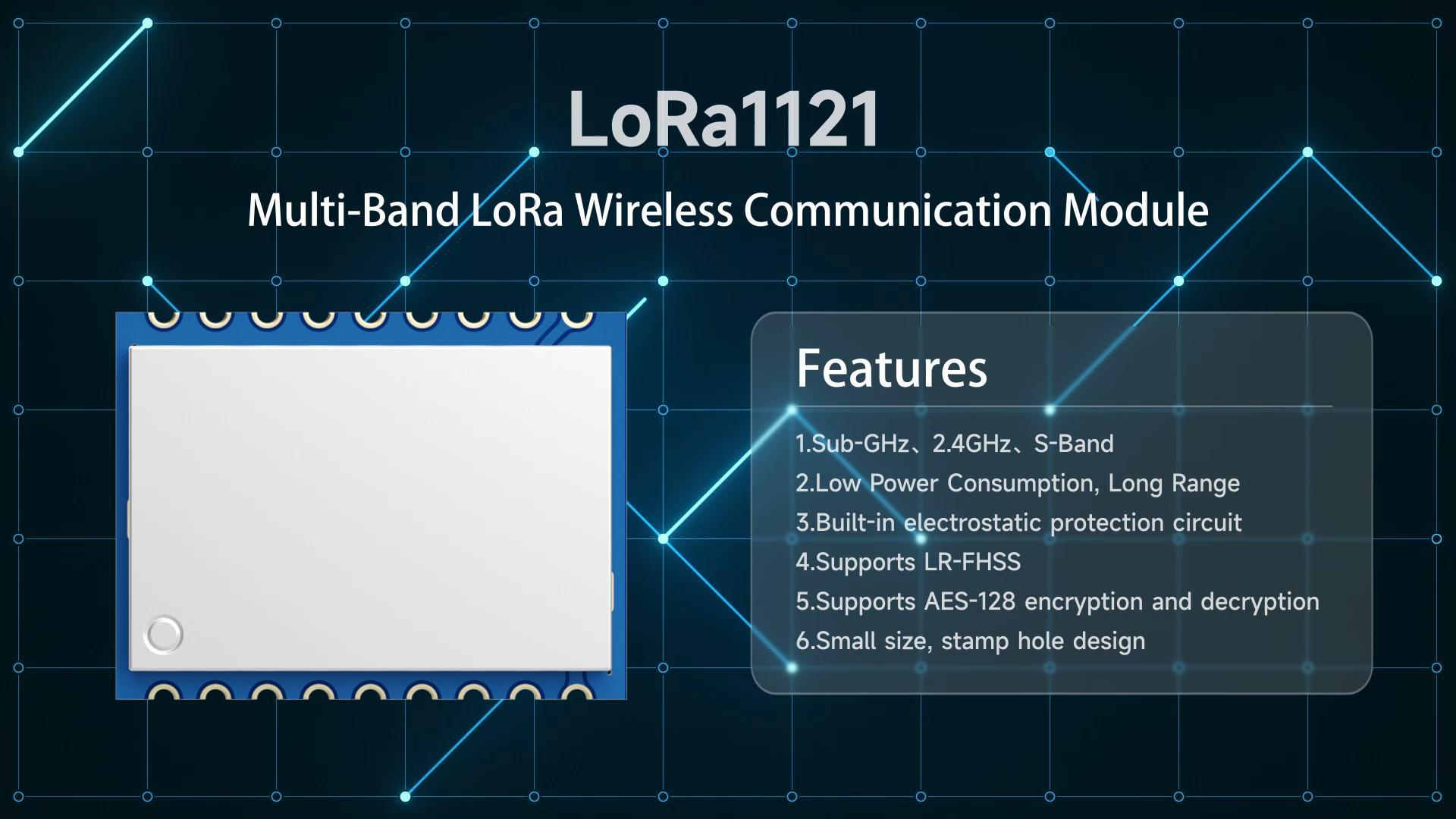 O módulo LoRa1121 utiliza o chip LR1121 da SEMTECH, um transceptor de longo alcance e ultrabaixo consumo de energia que suporta tanto a banda ISM global quanto a comunicação de 2,4 GHz. O LoRa1121 suporta modulação LoRa e (G)FSK nas bandas Sub-GHz e 2,4 GHz, bem como modulação Sigfox® na banda Sub-GHz e espectro espalhado de salto de frequência de longo alcance (LR-FHSS) nas bandas ISM Sub-GHz, 1,9-2,1 GHz e 2,4 GHz. O LR1121 atende aos requisitos de camada física das especificações LoRaWAN® divulgadas pela LoRa Alliance®, mantendo-se altamente configurável para atender às necessidades de diversas aplicações e protocolos proprietários.