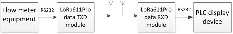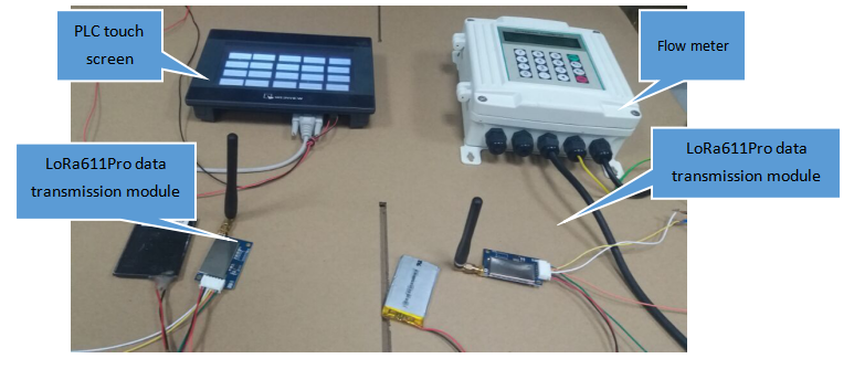 O medidor de vazão leu os dados de vazão e conectou o LoRa611Pro via porta serial. LoRa611Pro transmite os dados de fluxo para o receptor LoRa611Pro que se conectou à tela de toque do PLC via RS485. E exiba os dados de fluxo no PLC.